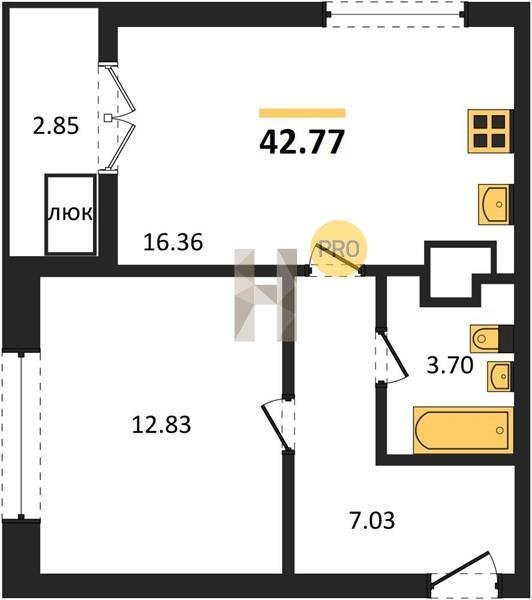 Площадь от 42.77 м2