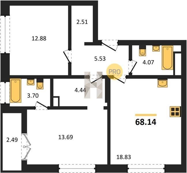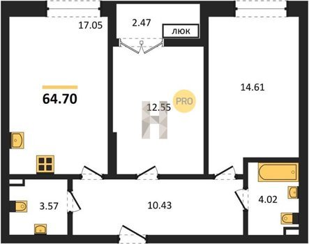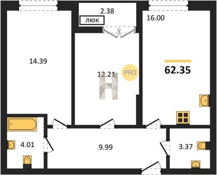 Площадь от 62.35 м2