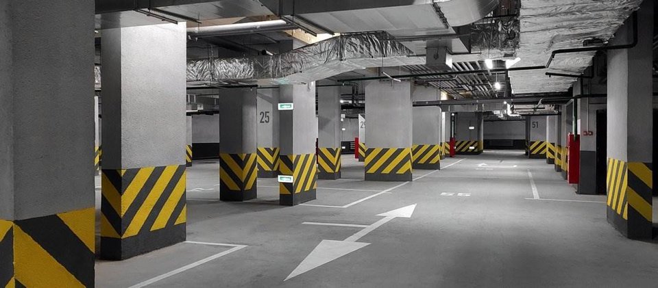 В жилом комплексе предусмотрен большой подземный паркинг.